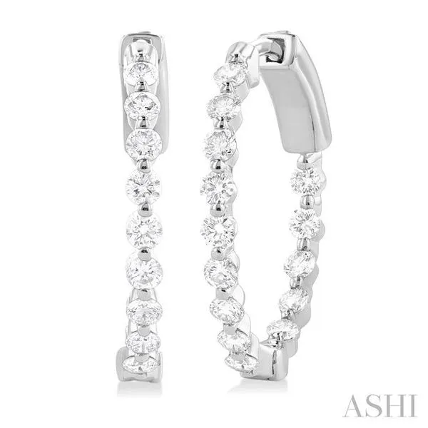 (319) 752-31961 Ctw Inside-Out Single Prong Set Round Cut Diamond Hoop Earrings in 14K White Gold