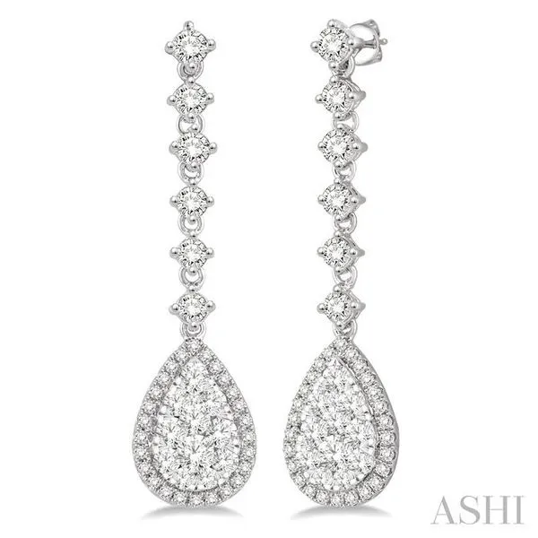(319) 752-31961 Ctw Pear Shape Dangler Round Cut Diamond Lovebright Earrings in 14K White Gold