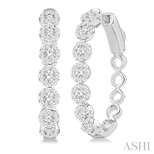 1 Ctw Round Cut Lovebright Diamond Hoop Earrings in 14K White Gold Image 2 Becker's Jewelers Burlington, IA