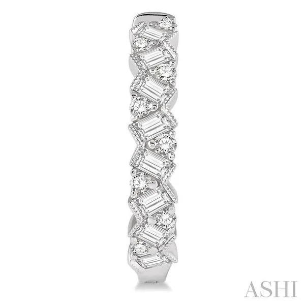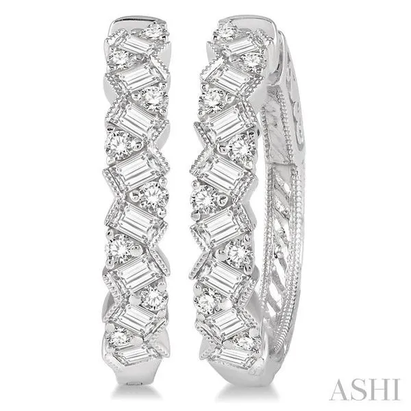 (319) 752-31961 Ctw Zigzag Baguette and Round Cut Diamond Hoop Earring in 14K White Gold