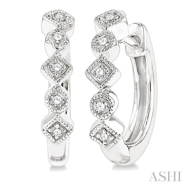 (319) 752-31961/10 Ctw Circular & Rhombus Mount Round Cut Diamond Huggie Petite Earrings in 10K White Gold