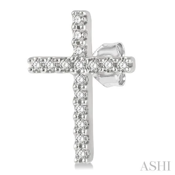 (319) 752-31961/10 Ctw Cross Round Cut Diamond Petite Fashion Earring in 14K White Gold