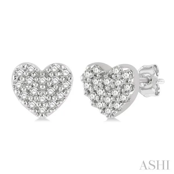 (319) 752-31961/10 Ctw Heart Charm Round Cut Diamond Petite Fashion Earring in 10K White Gold