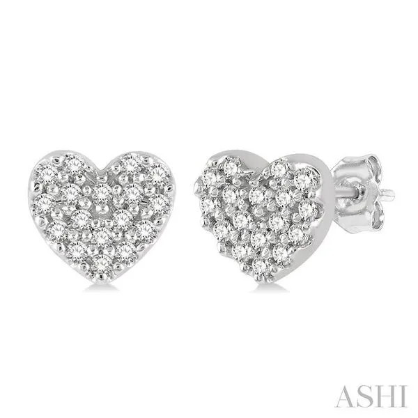 (319) 752-31961/10 Ctw Heart Charm Round Cut Diamond Petite Fashion Earring in 14K White Gold