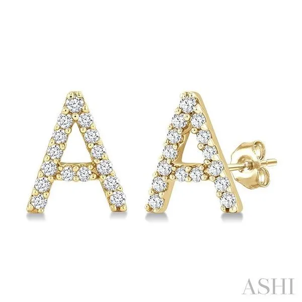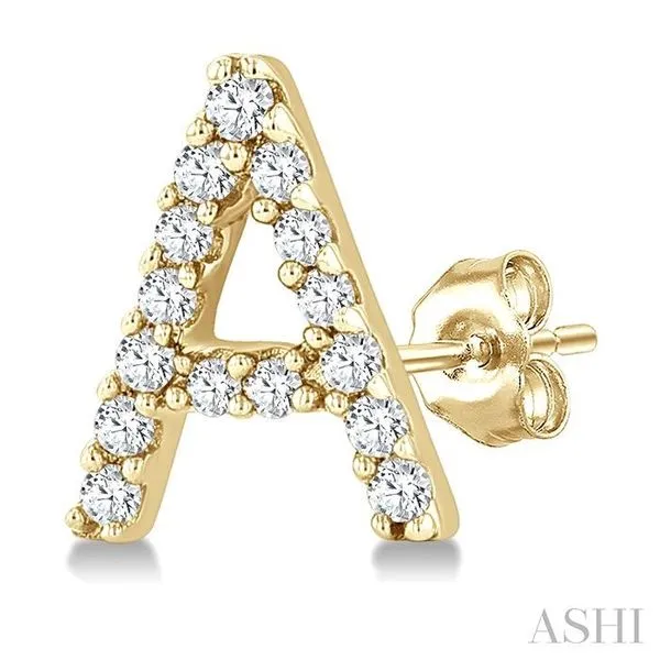 (319) 752-31961/10 Ctw Initial 'A' Single Cut Diamond Earrings in 10K Yellow Gold