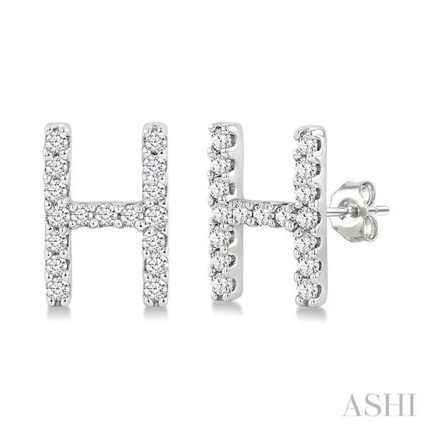 (319) 752-31961/10 Ctw Initial 'H' Single Cut Diamond Earrings in 10K White Gold