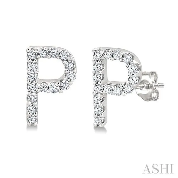 (319) 752-31961/10 Ctw Initial 'P' Single Cut Diamond Earrings in 10K White Gold
