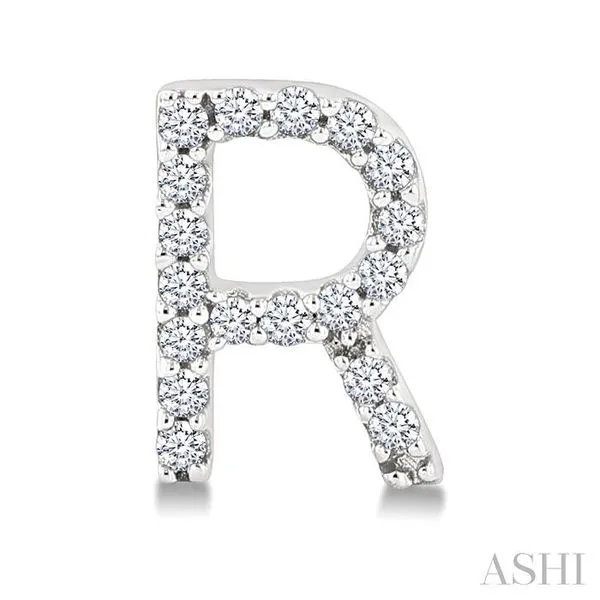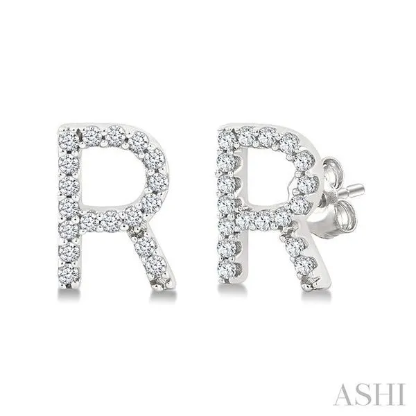 (319) 752-31961/10 Ctw Initial 'R' Single Cut Diamond Earrings in 10K White Gold