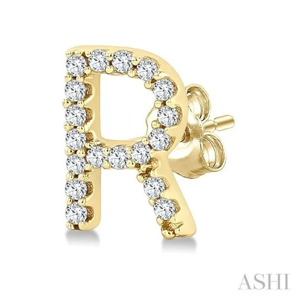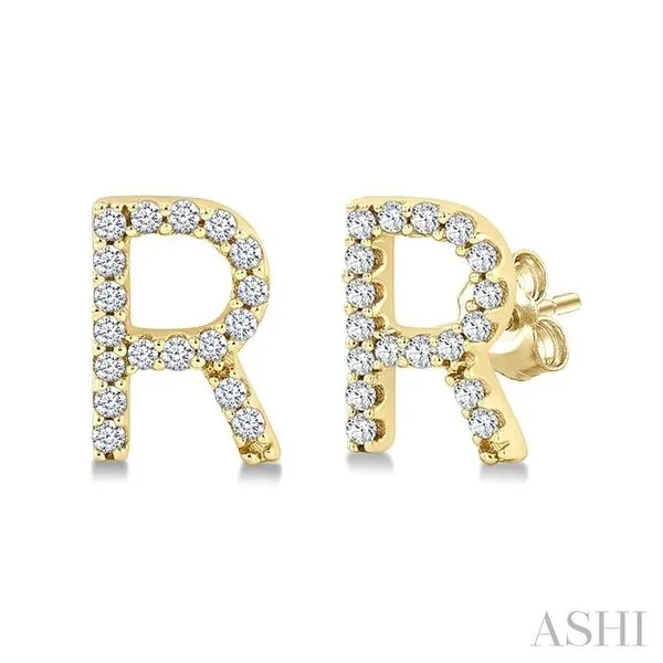 (319) 752-31961/10 Ctw Initial 'R' Single Cut Diamond Earrings in 10K Yellow Gold