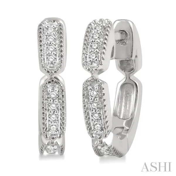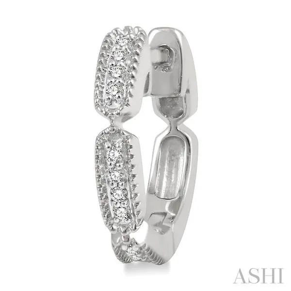 (319) 752-31961/10 Ctw Lattice Long Hexagonal Pod Round Cut Diamond Huggie Petite Earrings in 10K White Gold