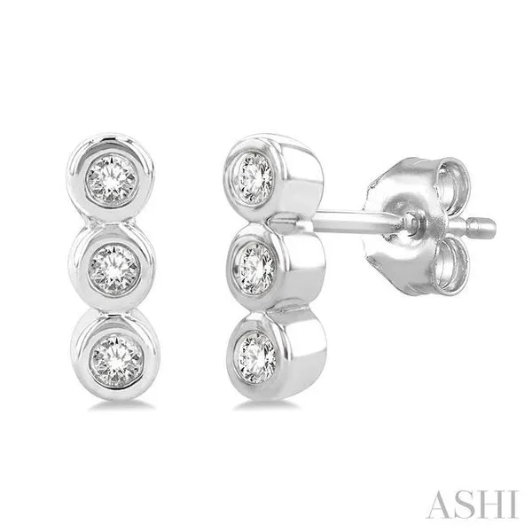 (319) 752-31961/10 Ctw Petite Bezel Set Round Cut Diamond Fashion Stud Earring in 10K White Gold