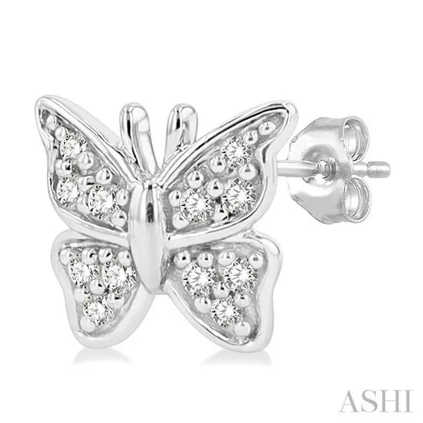(319) 752-31961/10 Ctw Petite Butterfly Round Cut Diamond Fashion Stud Earring in 10K White Gold