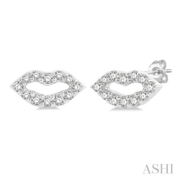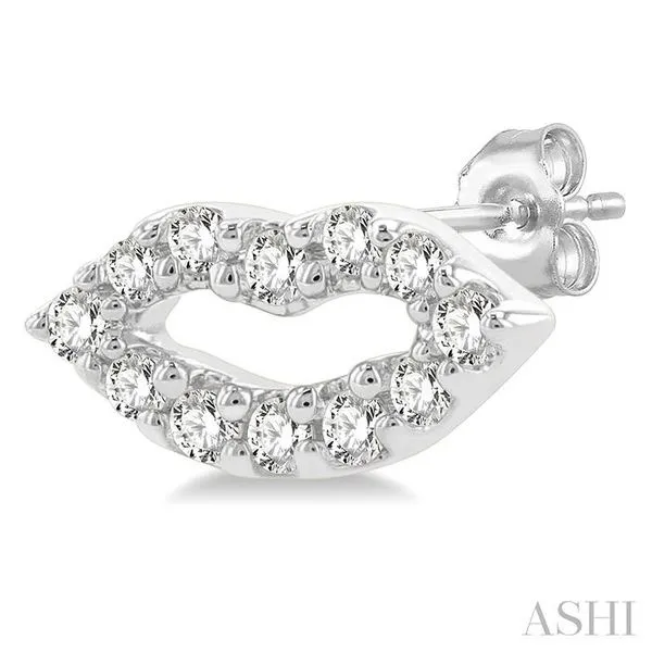 (319) 752-31961/10 Ctw Petite Lips Round Cut Diamond Fashion Stud Earring in 10K White Gold