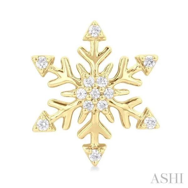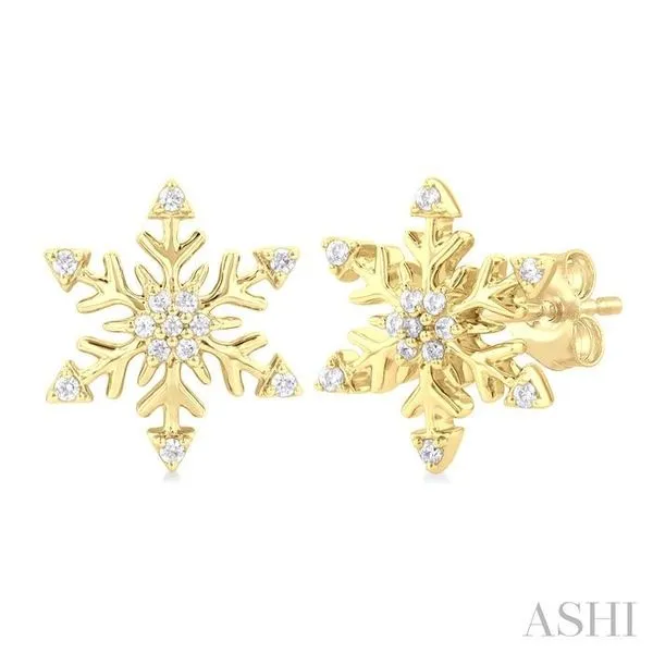 (319) 752-31961/10 Ctw Petite Snowflake Round Cut Diamond Halo Fashion Stud Earring in 10K Yellow Gold