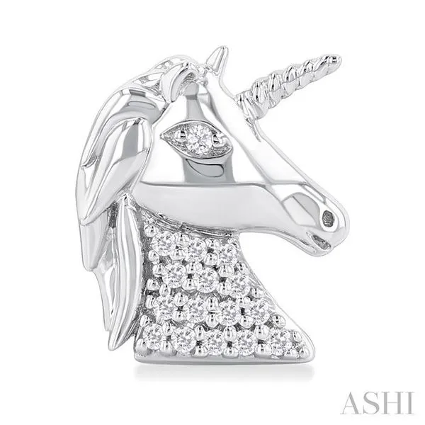 (319) 752-31961/10 Ctw Petite Unicorn Round Cut Diamond Cut Fashion Stud Earring in 10K White Gold