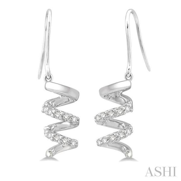 1/10 Ctw Spiral Round Cut Diamond Earrings in 10K White Gold Image 2 Becker's Jewelers Burlington, IA