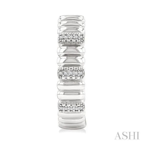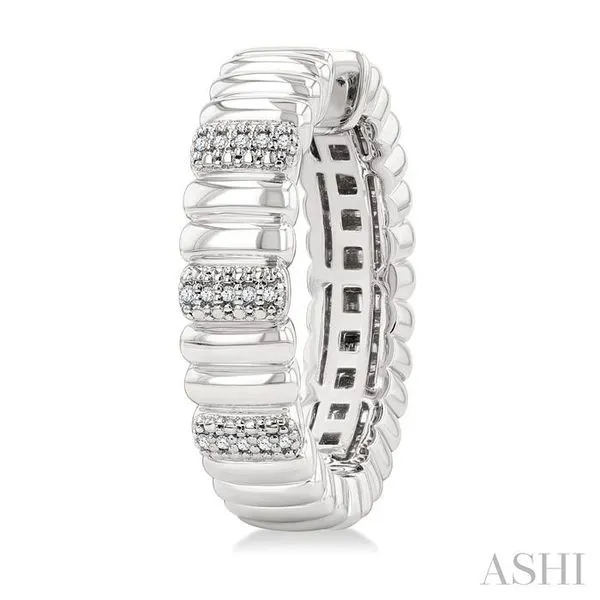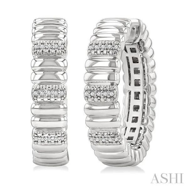 (319) 752-31961/10 Ctw Wide Ribbed Plain Polished and Round Cut Diamond Bold Fashion Hoop Earrings in Sterling Silver