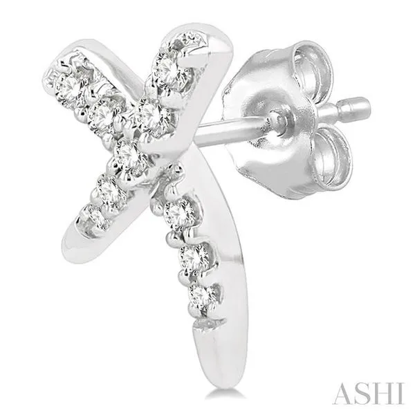 (319) 752-31961/10 Ctw X-Shape Petite Round Cut Diamond Fashion Stud Earring in 10K White Gold