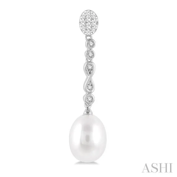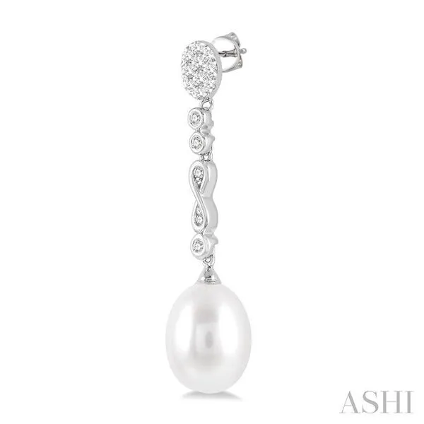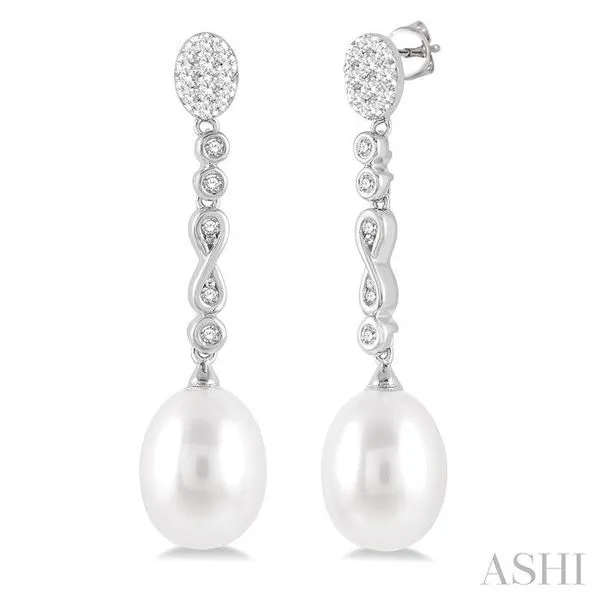 (319) 752-319611x8.5 MM Cultured Pearls and 1/4 Ctw Round Cut Diamond Drop Hanging Lovebright Earrings in 14K White Gold