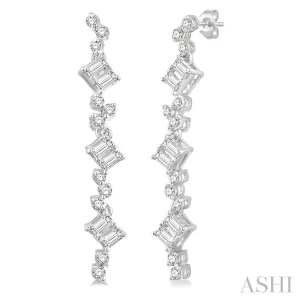 (319) 752-31961/2 Ctw Baguette and Round Cut Diamond Scatter Drop Earring in 14K White Gold