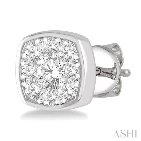 (319) 752-31961/2 Ctw Cushion Shape Round Cut Diamond Lovebright Bezel Stud Earring in 14K White Gold