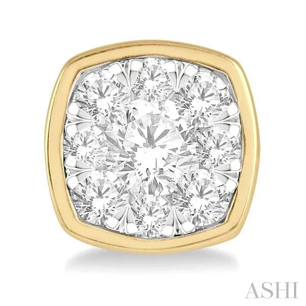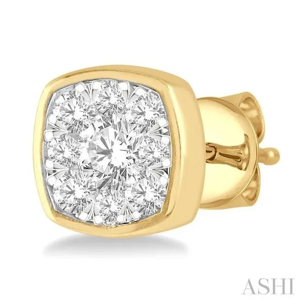 (319) 752-31961/2 Ctw Cushion Shape Round Cut Diamond Lovebright Bezel Stud Earring in 14K Yellow and White Gold
