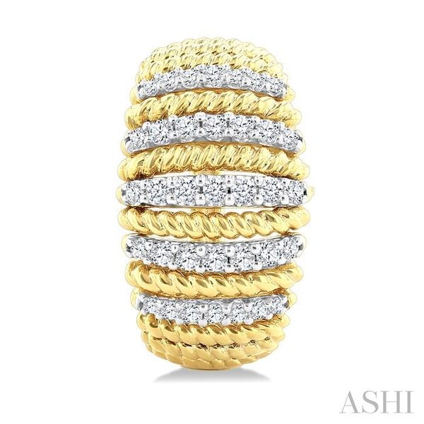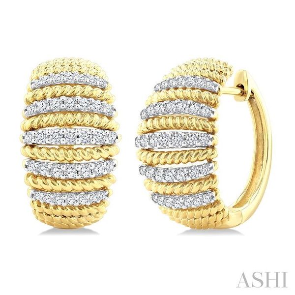 1/2 Ctw Dome Shape Rope Bead Round Cut Diamond Fashion Hoop Earring in 14K Yellow Gold Image 2 Becker's Jewelers Burlington, IA