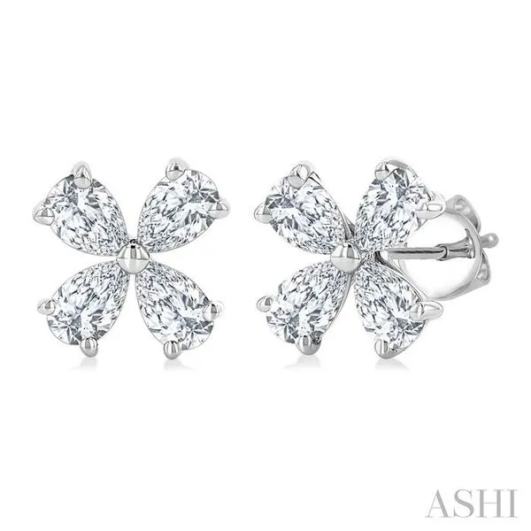 (319) 752-31961/2 Ctw Floral Pear Cut Diamond Stud Earrings in 14K White Gold