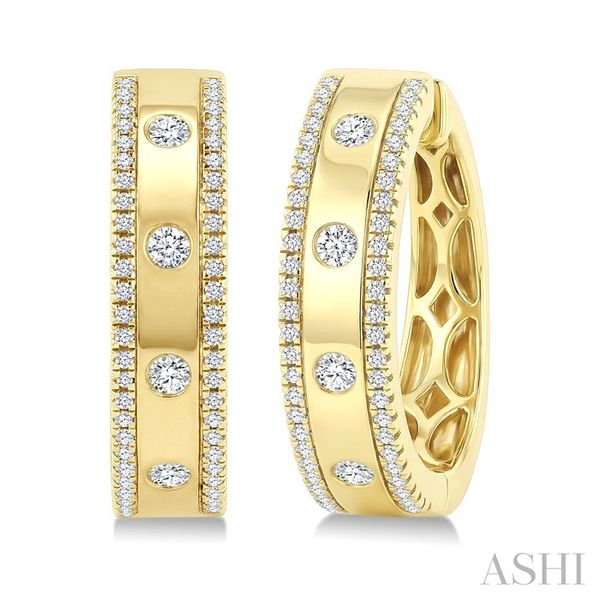 1/2 Ctw Flush Set Round Cut Diamond Fashion Huggie Earrings in 14K Yellow Gold Image 3 Becker's Jewelers Burlington, IA