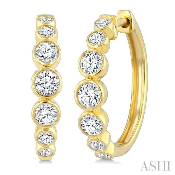 1/2 Ctw Graduated Bezel Set Round Cut Diamond Fashion Hoop Earrings in 14K Yellow Gold Image 2 Becker's Jewelers Burlington, IA