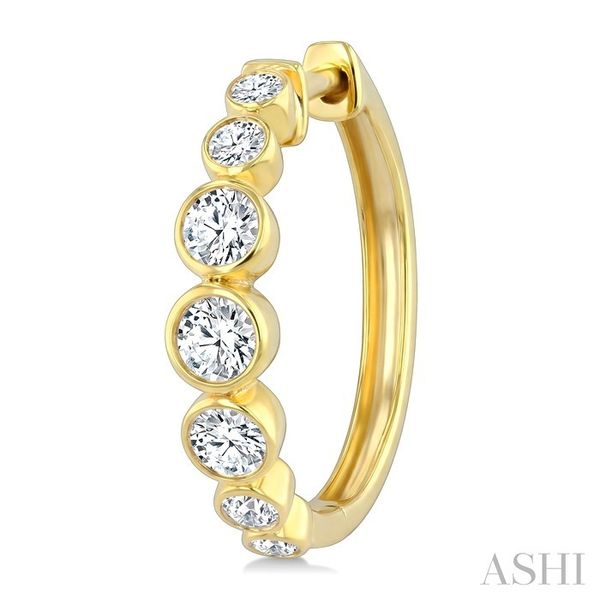 1/2 Ctw Graduated Bezel Set Round Cut Diamond Fashion Hoop Earrings in 14K Yellow Gold Image 3 Becker's Jewelers Burlington, IA