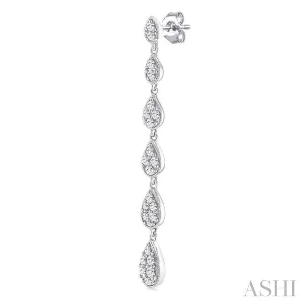 (319) 752-31961/2 Ctw Graduated Pear Shape Round Cut Diamond Fashion Long Earring in 14K White Gold