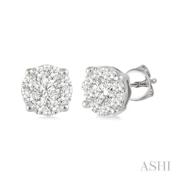 1/2 Ctw Lovebright Round Cut Diamond Stud Earrings in 14K White Gold Image 2 Becker's Jewelers Burlington, IA