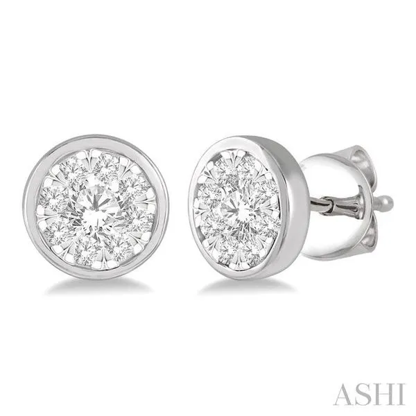 (319) 752-31961/2 Ctw Medallion Lovebright Round Cut Diamond Bezel Stud Earring in 14K White Gold