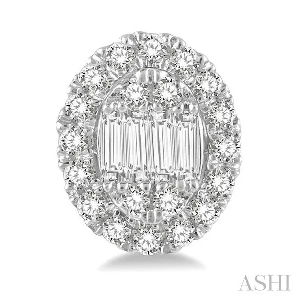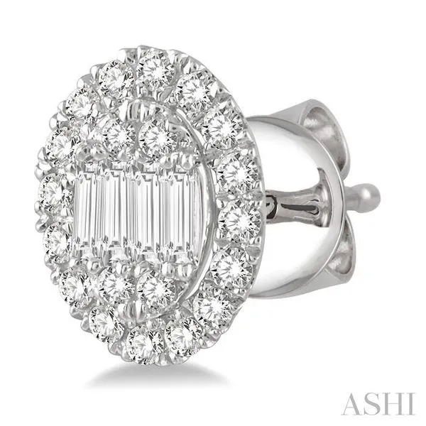 (319) 752-31961/2 Ctw Oval Mount Baguette and Round Cut Diamond Earrings in 14K White Gold