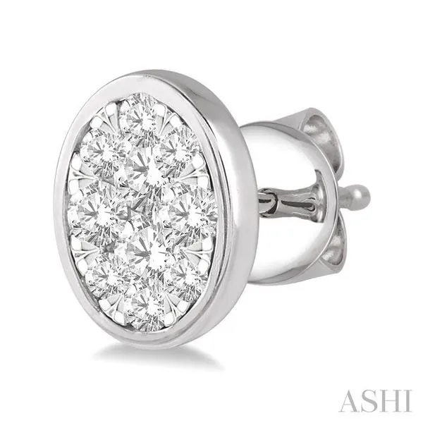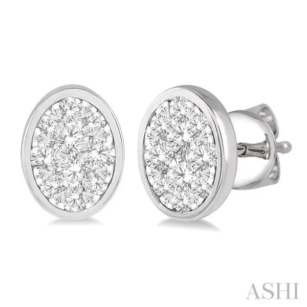 (319) 752-31961/2 Ctw Oval Shape Lovebright Round Cut Diamond Bezel Stud Earring in 14K White Gold