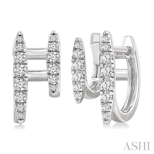 1/2 Ctw Petite Double Hoop Round Cut Diamond Fashion Huggies in 14K White Gold Image 3 Becker's Jewelers Burlington, IA