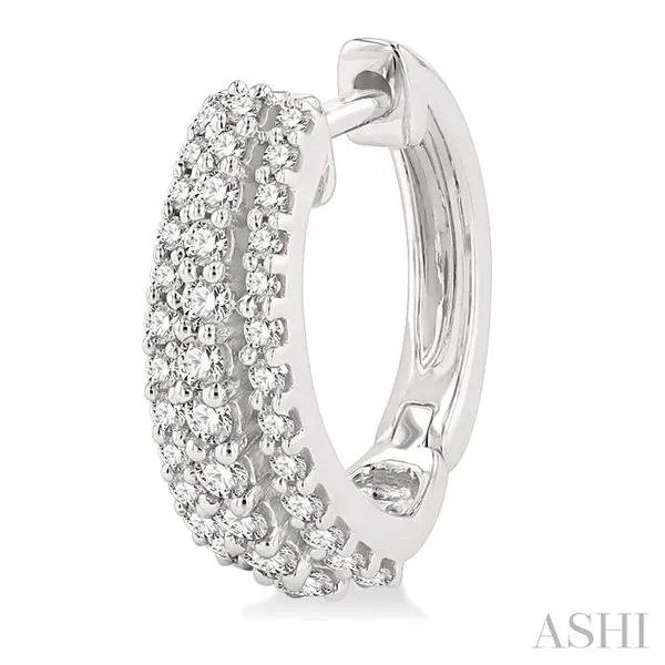 (319) 752-31961/2 Ctw Triple Row Round Cut Diamond Huggie Petite Earrings in 14K White Gold