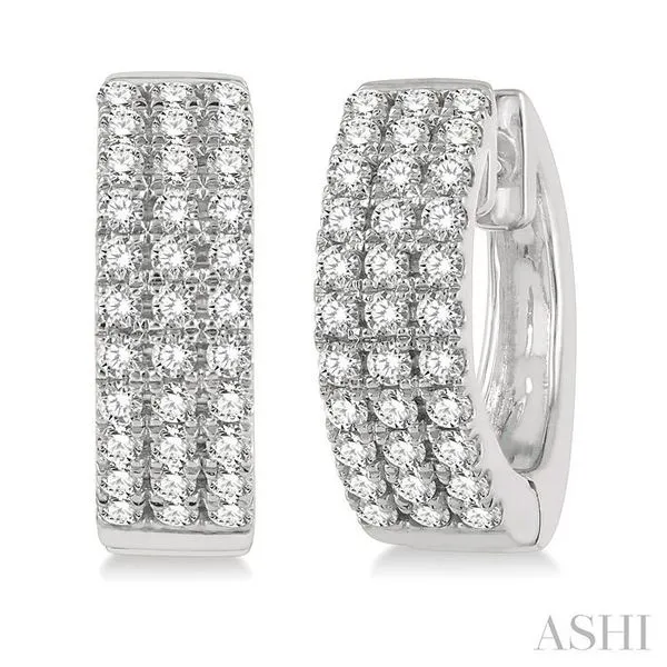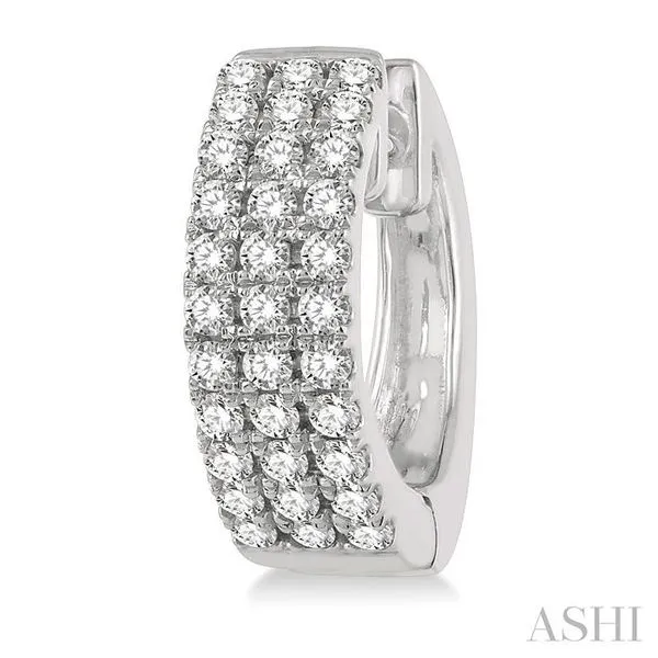 (319) 752-31961/2 Ctw Triple Row Round Cut Diamond Petite Fashion Huggie Earrings in 14K White Gold