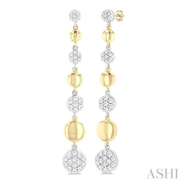 1/2 Ctw Two-Toned Puffed Circular Link Round Cut Diamond Fashion Long Earring in 14K Yellow and White Gold Image 2 Becker's Jewelers Burlington, IA