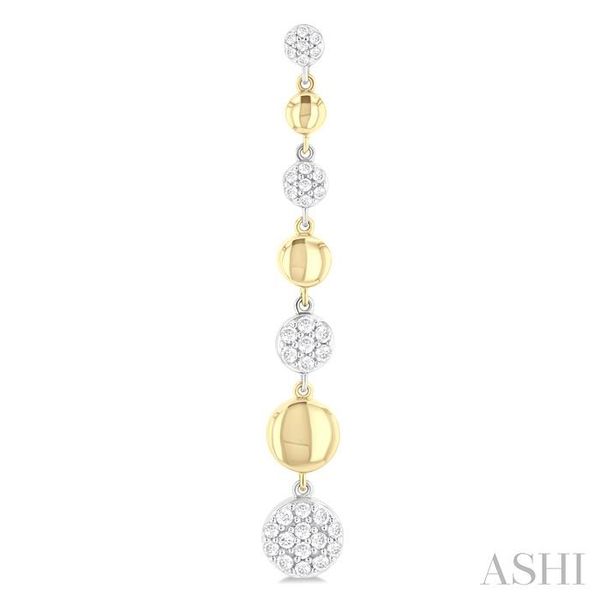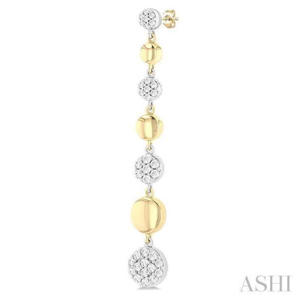 1/2 Ctw Two-Toned Puffed Circular Link Round Cut Diamond Fashion Long Earring in 14K Yellow and White Gold Image 3 Becker's Jewelers Burlington, IA