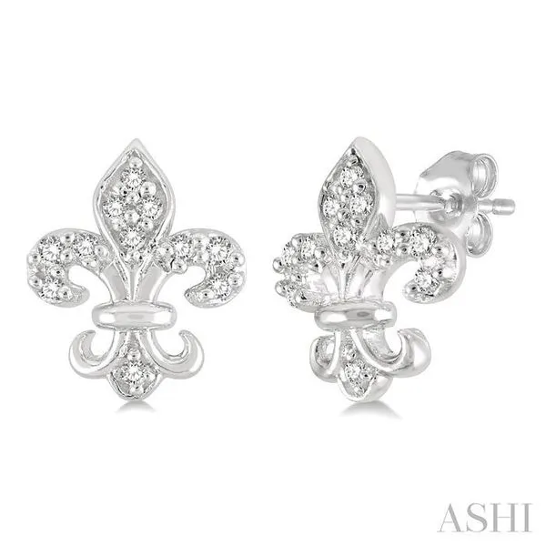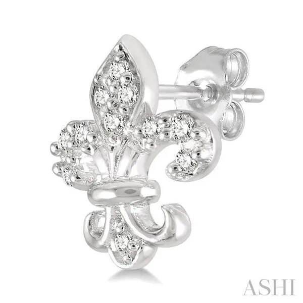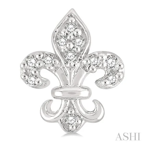 (319) 752-31961/20 Ctw Fleur De Lis Round Cut Diamond Petite Earring in 10K White Gold