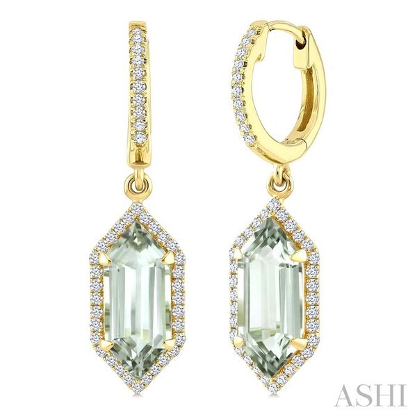 12X5 MM Hexagon Shape Green Amethyst and 1/3 Ctw Round Cut Diamond Semi-Precious Earrings in 10K Yellow Gold Image 2 Becker's Jewelers Burlington, IA
