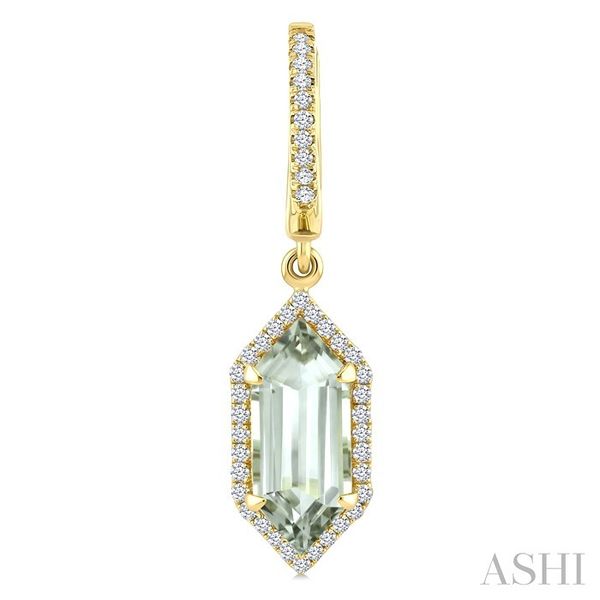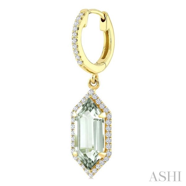 12X5 MM Hexagon Shape Green Amethyst and 1/3 Ctw Round Cut Diamond Semi-Precious Earrings in 10K Yellow Gold Image 3 Becker's Jewelers Burlington, IA