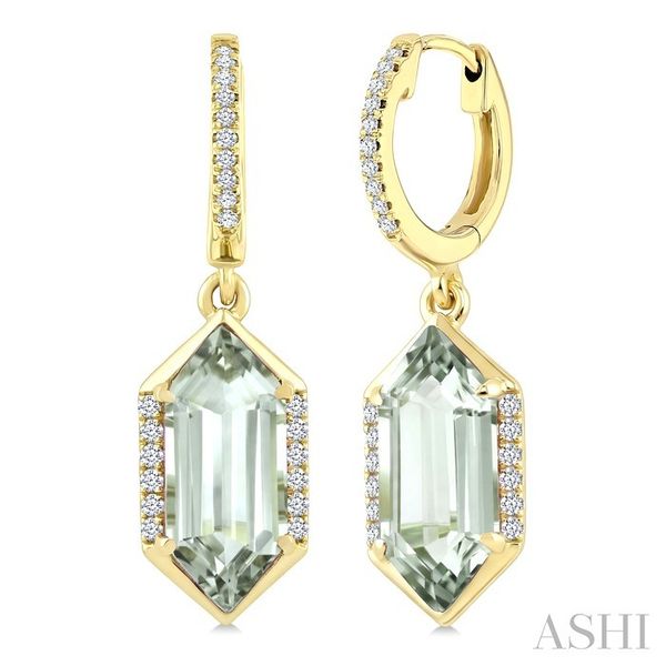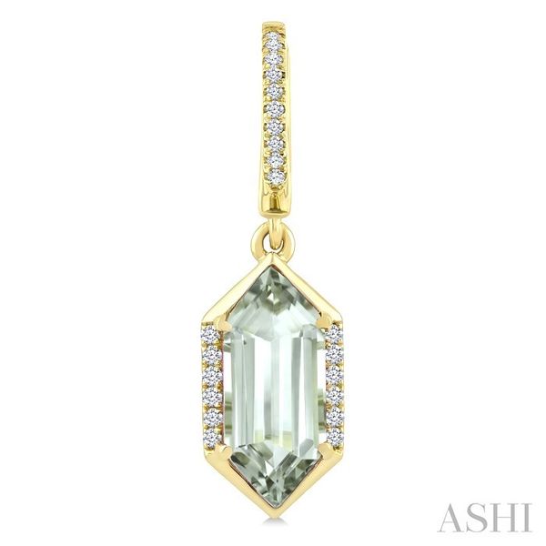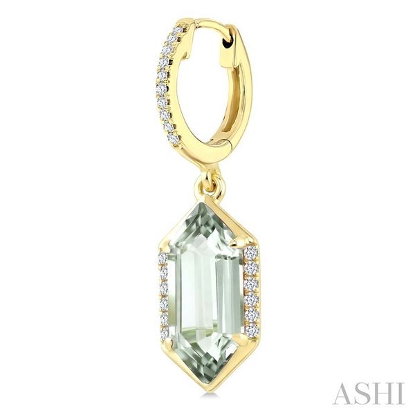 12X5 MM Hexagon Shape Green Amethyst and 1/5 Ctw Round Cut Diamond Semi-Precious Earrings in 10K Yellow Gold Image 3 Becker's Jewelers Burlington, IA