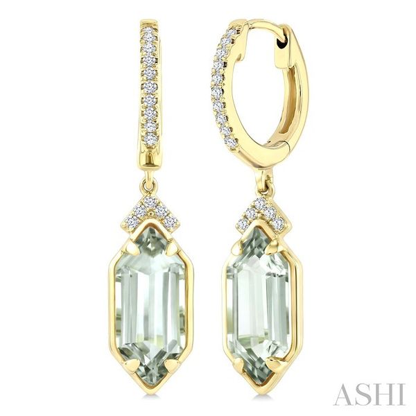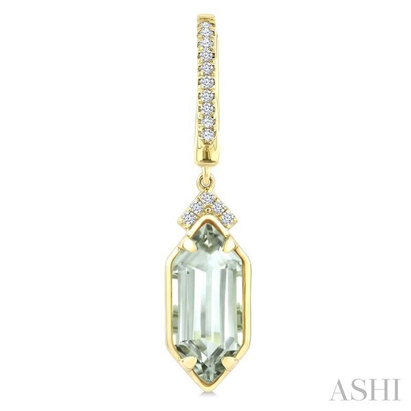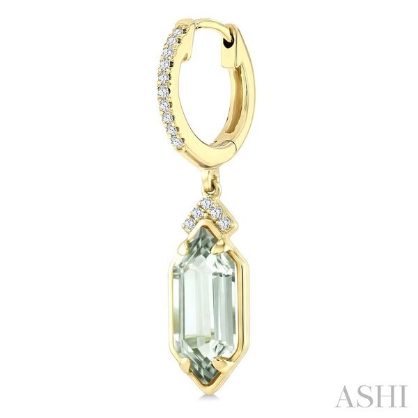 12X5 MM Hexagon Shape Green Amethyst and 1/6 Ctw Round Cut Diamond Semi-Precious Earrings in 10K Yellow Gold Image 3 Becker's Jewelers Burlington, IA
