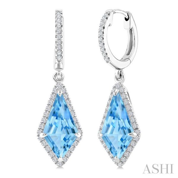 12X5 MM Kite Shape Blue Topaz and 1/3 Ctw Round Cut Diamond Semi-Precious Earrings in 10K White Gold Image 2 Becker's Jewelers Burlington, IA