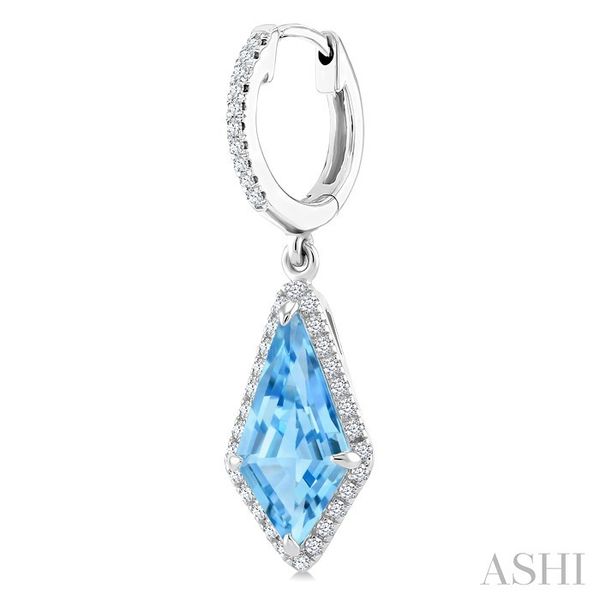 12X5 MM Kite Shape Blue Topaz and 1/3 Ctw Round Cut Diamond Semi-Precious Earrings in 10K White Gold Image 3 Becker's Jewelers Burlington, IA