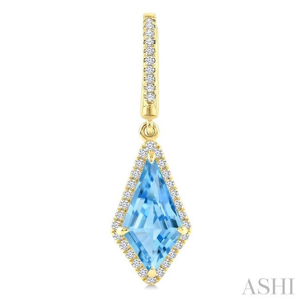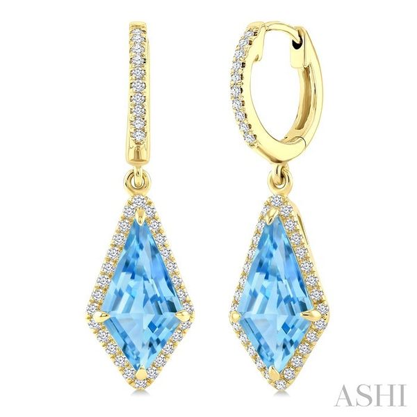 12X5 MM Kite Shape Blue Topaz and 1/3 Ctw Round Cut Diamond Semi-Precious Earrings in 10K Yellow Gold Image 2 Becker's Jewelers Burlington, IA
