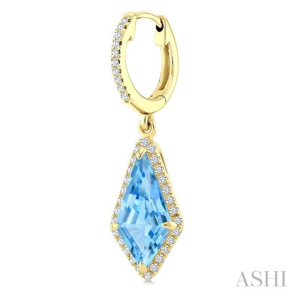 12X5 MM Kite Shape Blue Topaz and 1/3 Ctw Round Cut Diamond Semi-Precious Earrings in 10K Yellow Gold Image 3 Becker's Jewelers Burlington, IA
